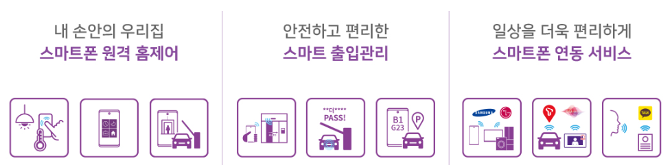 - 조명, 가스, 냉난방, 환기, 대기전력, 디지털도어록 등 편리하게 스마트폰 앱으로 제어
