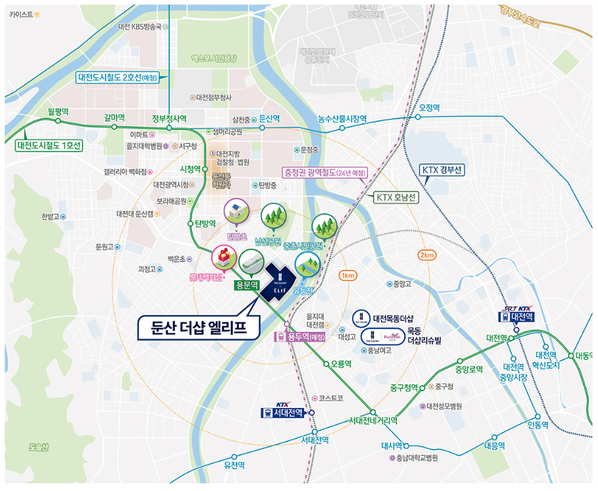 교통호재로 충청권 광역철도. 도시철도 2호선 트램이 예정되어 높은 미래가치를 보유하고 있습니다.