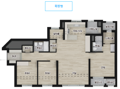 4BAY 판상형, 알파룸 및 현관창고, 팬트리 구성