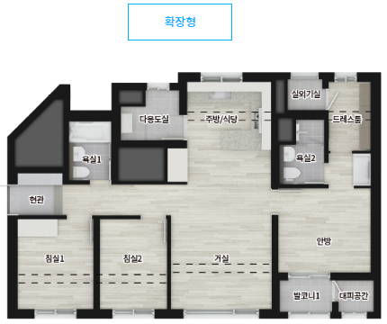 4BAY 판상형, 대형 드레스룸 및 다용도실.